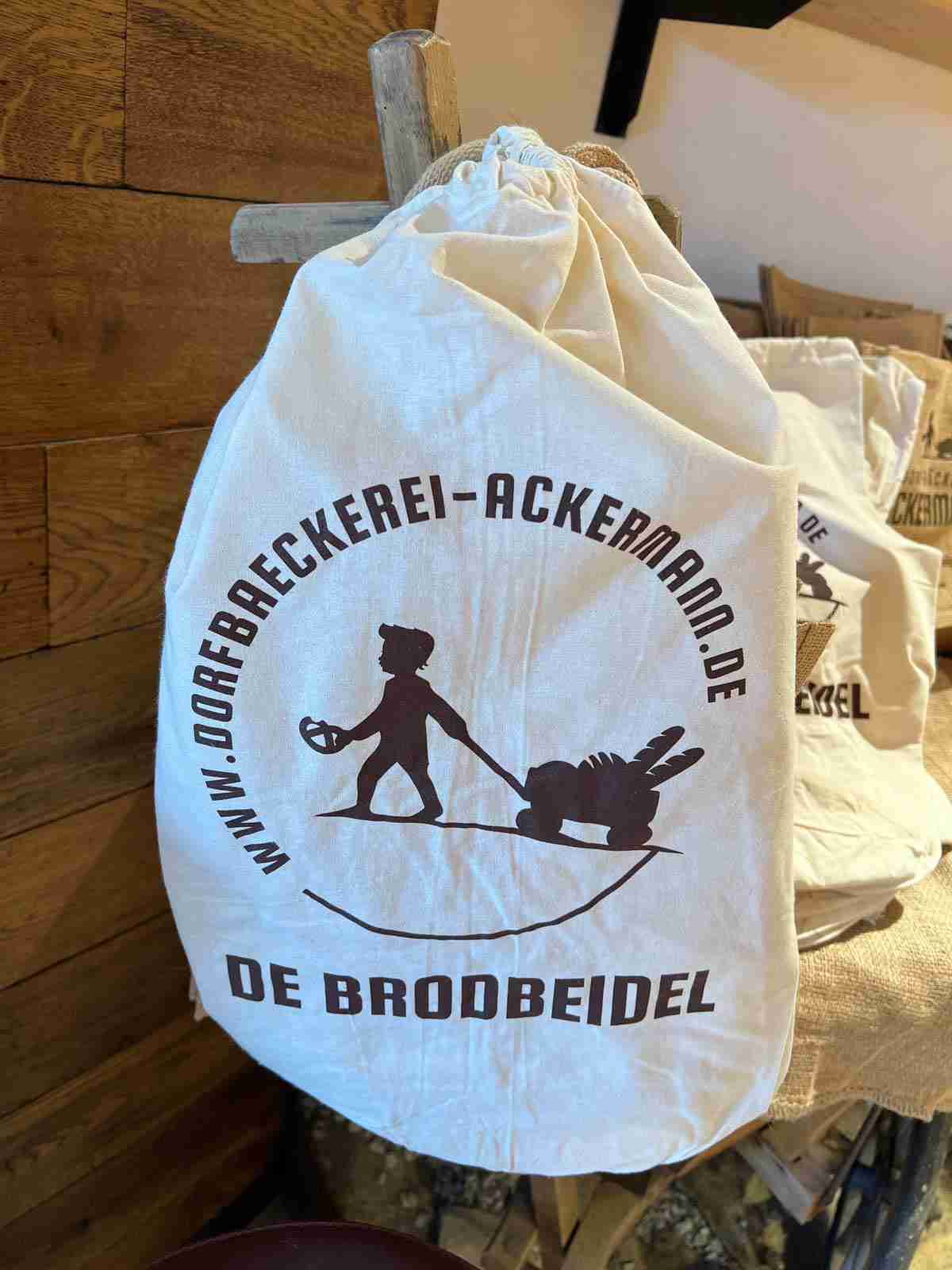 In “de Brodbeidel” passen nicht nur Brötchen und Brote hinein, er ist ein vielfältiger Helfer im täglichen Einsatz. Mit edlem Motiv unserer Bäckerei bedruckt.