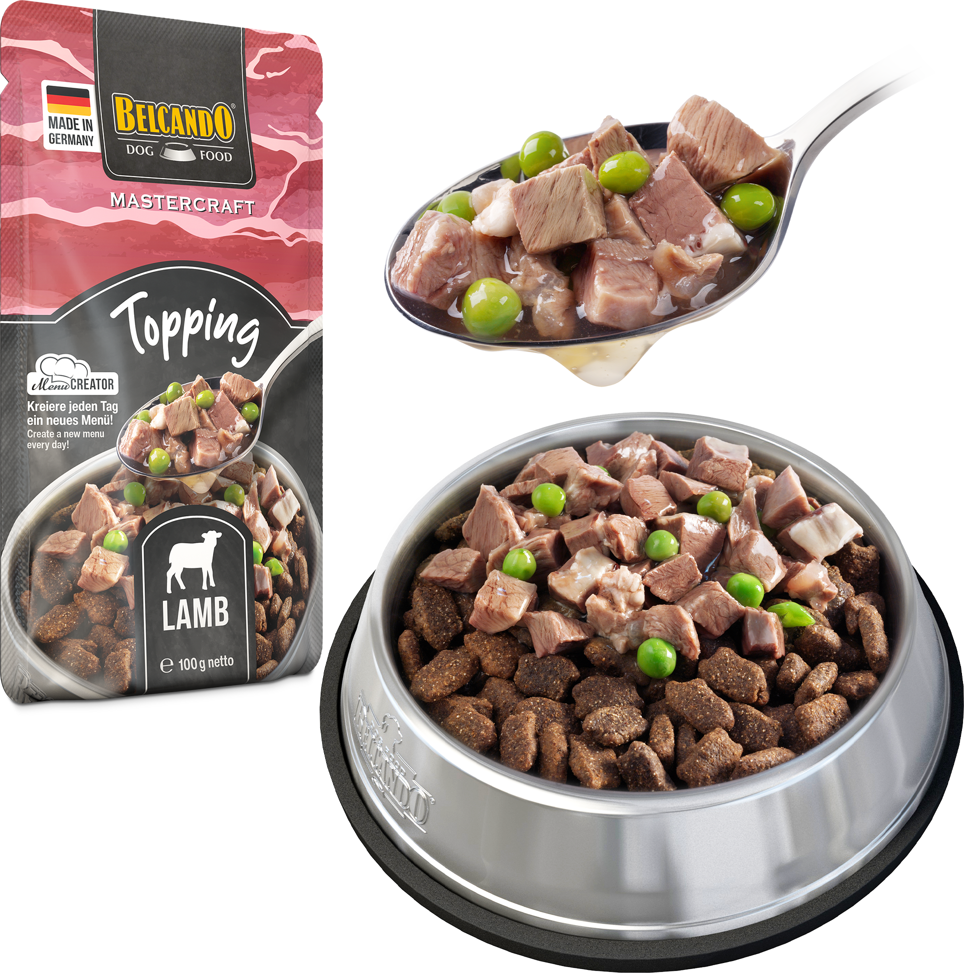 Ihr Hund ist ein echter Feinschmecker und liebt den Geschmack von knackigen Kroketten und schonend gegarten, saftigen Fleischwürfeln in leckerer Brühe? Dann sind unsere Toppings genau die richtige Lösung.