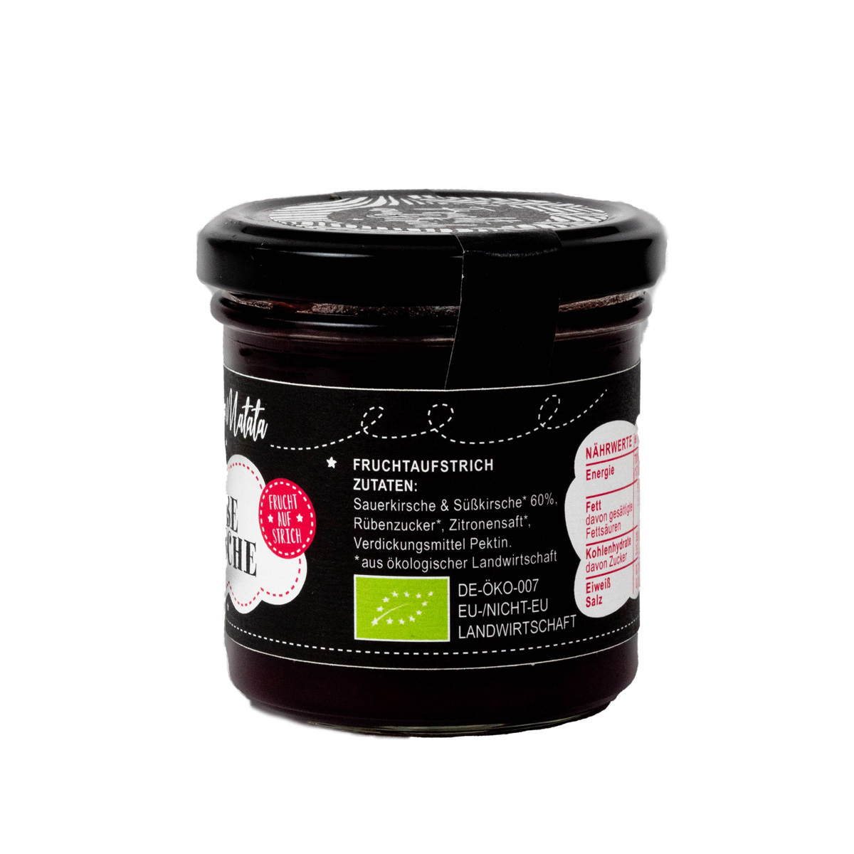 Zutaten: Sauerkirsche* & Süßkirsche* 60 %, Rübenzucker*, Zitronensaft*, Verdickungsmittel Pektin.
