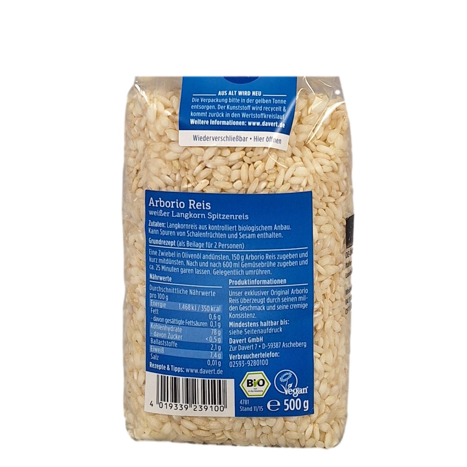 Arborio Reis zeichnet sich durch einen hohen Stärkegehalt aus, er lässt sich zur Herstellung typischer Risotto-Gerichte und als Milchreis verwenden. Die großen, dicken Körner geben ein Teil ihrer Stärke in das Kochwasser ab. Die Reisstärke hält die Körner und andere Zutaten zusammen; dadurch kommt die typische cremige und sämige Konsistenz eines Risottos zustande.
