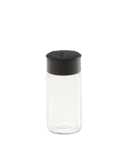 leeres Gewürzglas mit schwarzem Multi-Streuer-Aufsatz.