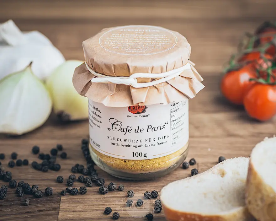 Mit dieser Gewürzmischung aus dem Hause Gourmet Berner zaubert jeder seine Café de Paris Butter oder einen köstlichen Dip selbst. Einfach nach Belieben mit Crème fraiche, Joghurt oder Butter verrühren und genießen.