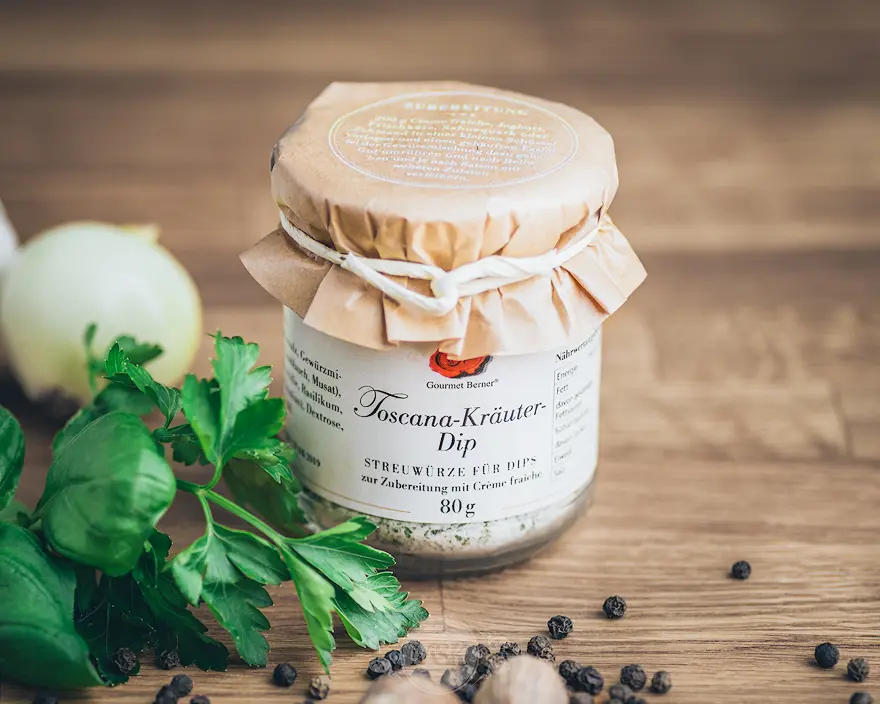 Streuwürze für Dips, zur Zubereitung mit Crème fraiche.