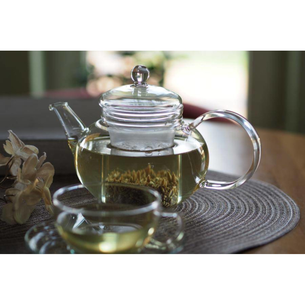 | Die leicht zu reinigende Jenaer Glas Teekanne MIKADO bringt Atmosphäre in jede Teerunde. Sie überzeugt nicht nur durch ihr schönes und schlichtes Design, sondern auch durch ihre hohe Funktionalität. Die porenfreie und glatte Oberfläche der Glaskanne ist leicht zu reinigen und sie verfügt über ein Fassungsvermögen von 600 ml. Außerdem ist die schöne Teekanne spülmaschinenfest, hitzebeständig und für die Mikrowelle geeignet. Da sie aus Borosilikatglas besteht, hat sie keinerlei Einfluss auf den Teegeschmack, weil dieses spezielle Glas geschmacksneutral ist. Größere Modelle und Nachfolger der Kanne MIKADO sind in unserem Shop unter dem Namen MIKO (Trendglas Jena) erhältlich. Dekorationsartikel gehören nicht zum Leistungsumfang! |