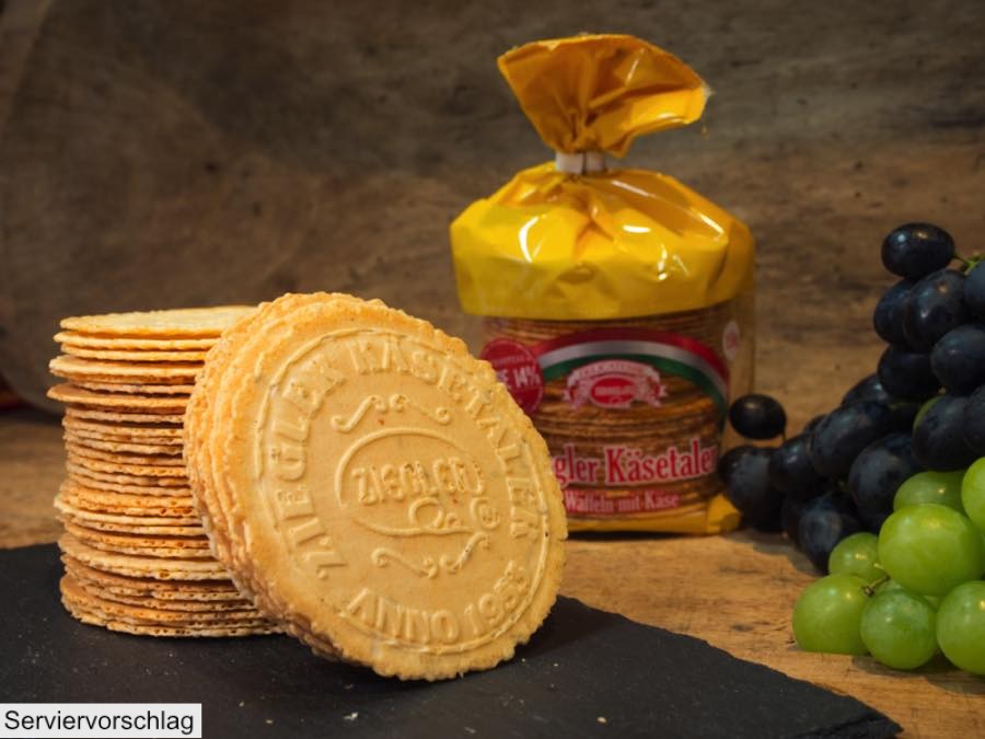 Die Ziegler Käsetaler sind ein Gebäck,welches sie zum Wein, Bier oder Frischkäse genießen können. Sie sind im Waffeleisen ohne Fette hergestellt und haben einen milden Geschmack.