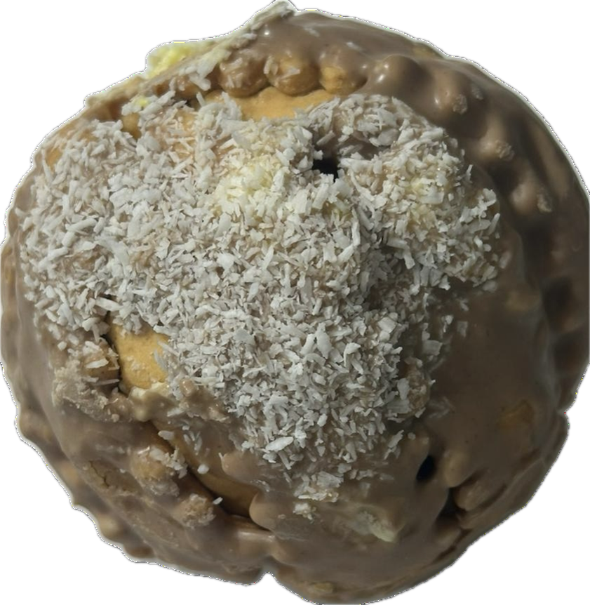 Haselnussglasur, glutenhaltiges Weizenmehl, Eier, Laktose, natürliche Aromastoffe, Kokosnuss, Spuren von Soja und Schalenfrüchten (Mandeln, Haselnüsse, Erdnüsse)