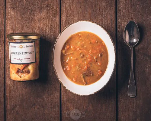 Zutaten: Karotten, Rindfleisch, Brühe, Kartoffeln, Zwiebeln, Porree, Jodsalz, Zucker, Senf (Senfsaat, Essig, Kräuter, Gewürze, Natürl. Aromen)
