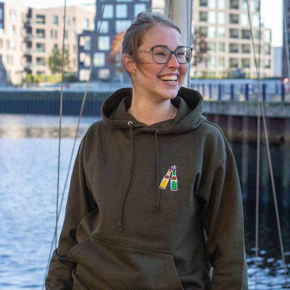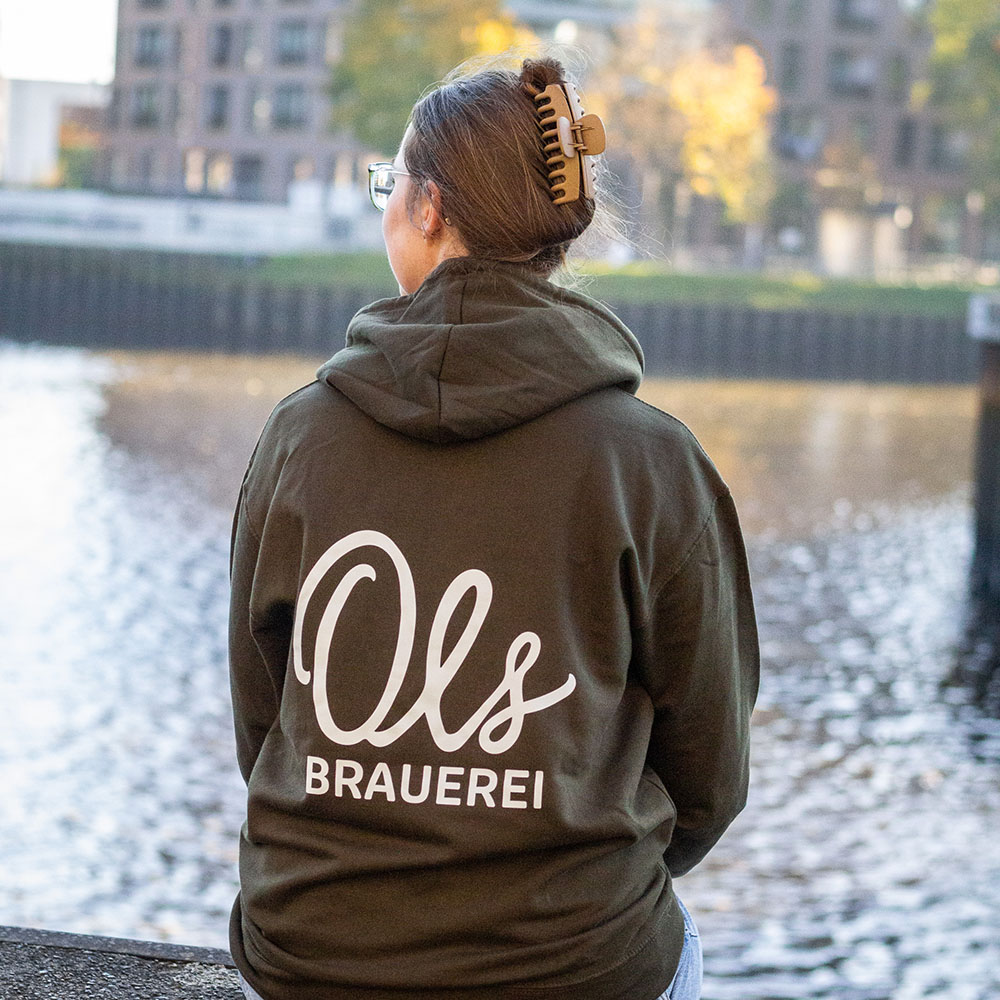 Unser gemütlicher grüner Ols Hoodie. Auf der Vorderseite sind unsere Ols Flaschen fein gestickt. Auf der Rückseite ist unser Ols Brauerei Logo. Ideal für jede Gelegenheit – ob beim Spaziergang am Hafen, beim Stadtbummel oder gemütlich Zuhause auf dem Sofa. Der weiche Stoff und die bequeme Passform machen diesen Hoodie zu unserem Lieblingsstück.
