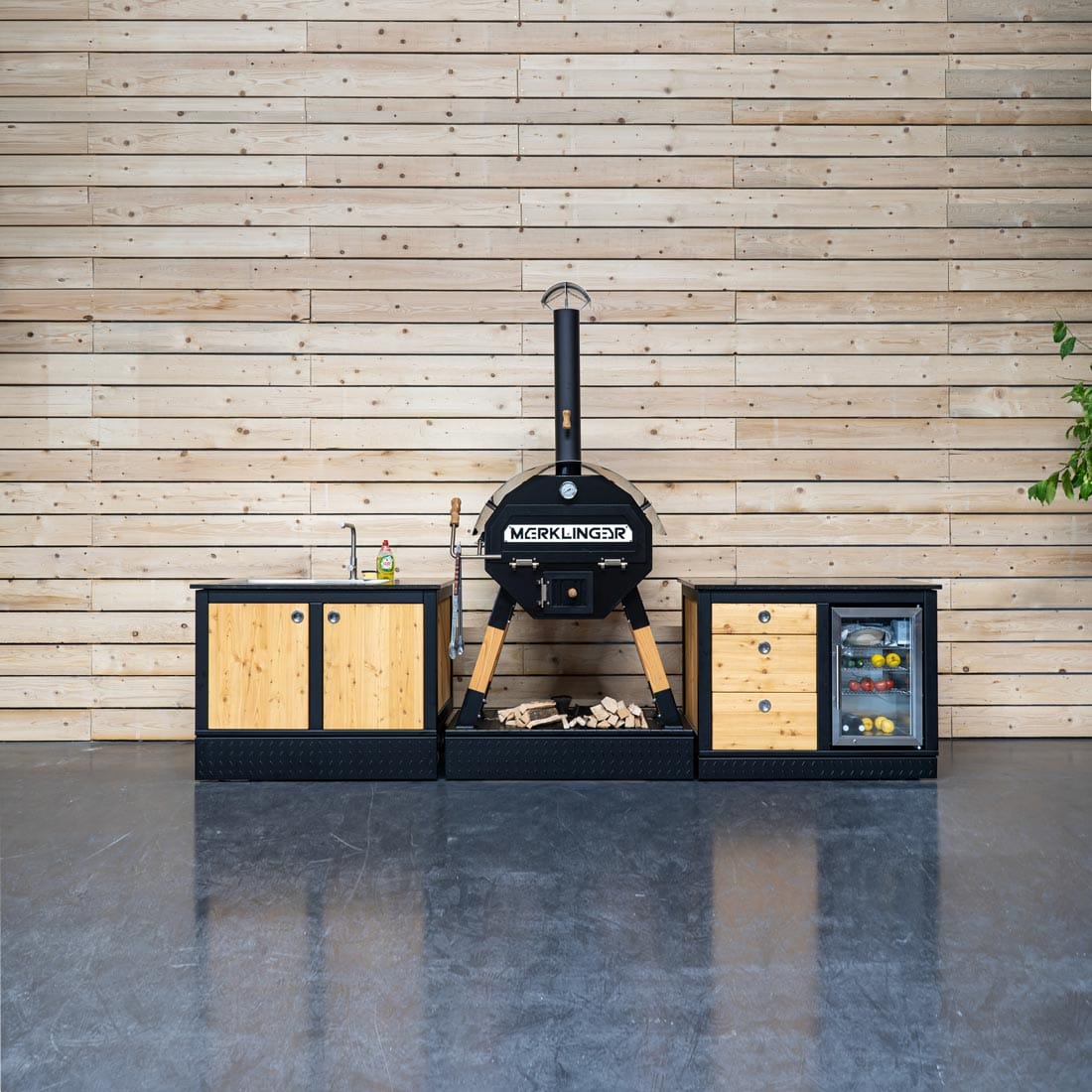 Die Merklinger Outdoorküche „Chefkoch“. Bestens ausgestattet bist du mit dem Merklinger 800 und zwei Outdoor Modulen mit Granitoberfläche und integriertem Edelstahl Spülbecken sowie Kühlschrank. Das Kühlen deiner Getränke, Teige und Speisen direkt neben deinem Merklinger, sowie Gemüse waschen oder einfach nur abspülen war noch nie so einfach. Der hochwertige Outdoor Kühlschrank besitzt eine LED Beleuchtung, 63 Liter Lagervolumen, 3 herausnehmbare Einlegeböden und 3-lagiges Isolier-Sicherheitsglas mit UV-Filter. 0% Finanzierung möglich!