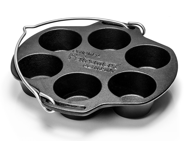 Ob herzhaft oder süß, mit der Muffinform gelingen dir die leckeren Gebäcke problemlos, egal ob in der Draußen-Küche oder im heimischen Herd. Wenn du die Form im Feuertopf ft9 verwenden möchtest, empfehlen wir dir vorher den Untersetzer ftus oder den Stapelrost in den Topf zu setzen, bevor du die Muffinform hineinstellst, denn Gusseisen sollte zueinander immer etwas Abstand haben, damit es nicht beschädigt wird.