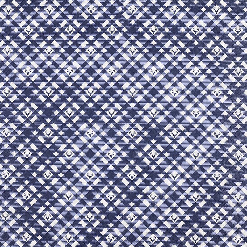 Plaid mit Deers blau: Tradition trifft moderne Eleganz mit Karo- und Hirschmotiven. Ideal für festliche Anlässe und kreative Tischdekorationen.