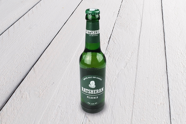 Bier Ratsherren. Flasche 0,33l. Alkoholgehalt 4,9%.