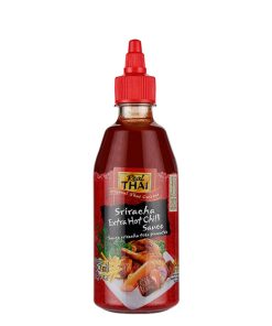 Sriracha Extra Hot Chilli: Die Würzsauce Sriracha Extra Hot Chilli ist die sehr scharfe, original thailändische Variante aus Chili (Chilianteil 56%!) und Knoblauch. Wer es etwas milder mag, dem empfehlen wir unsere Sriracha Chili Sauce.