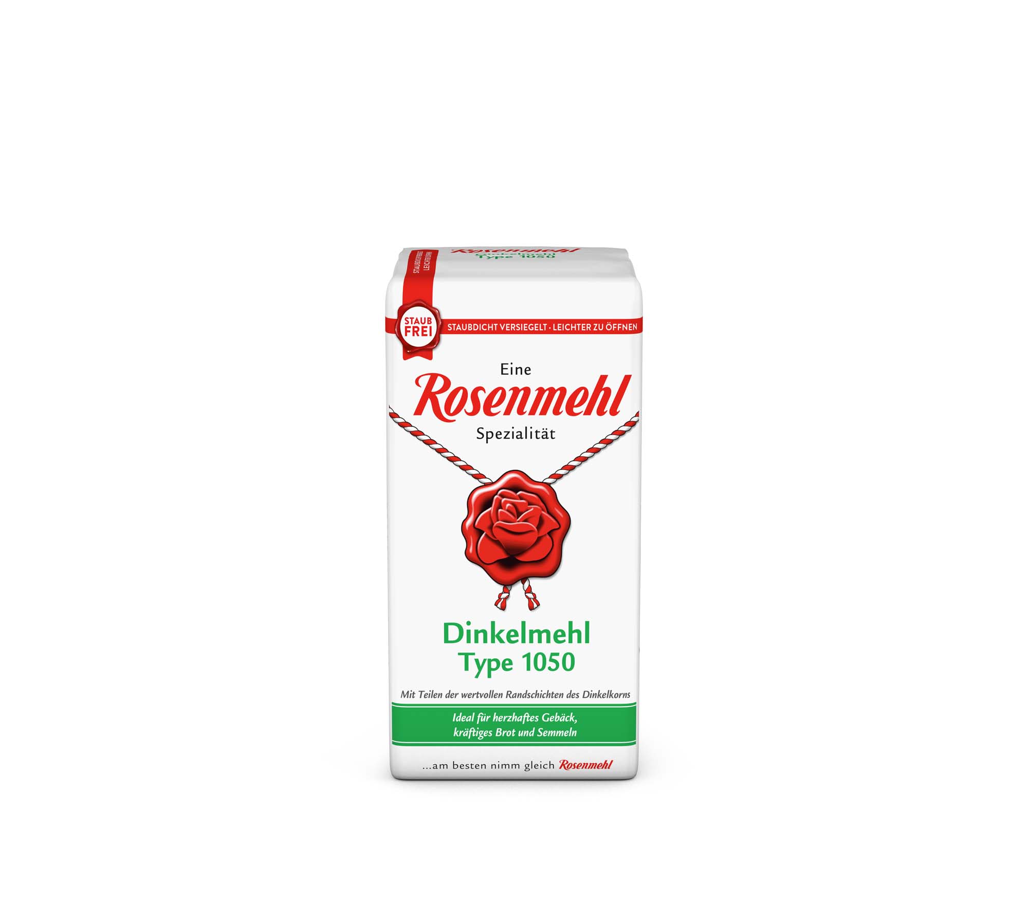 Rosenmehl Dinkelmehl Type 1050 vereint hervorragende Backeigenschaften mit wertvollen Inhaltsstoffen aus den Randschichten des Dinkelkorns. Aus diesem Mehl hergestelltes Gebäck ist etwas kräftiger und schmeckt leicht nussig. Auch kräftige Brote und Semmeln gelingen mit diesem Markenmehl stets sicher und zuverlässig.