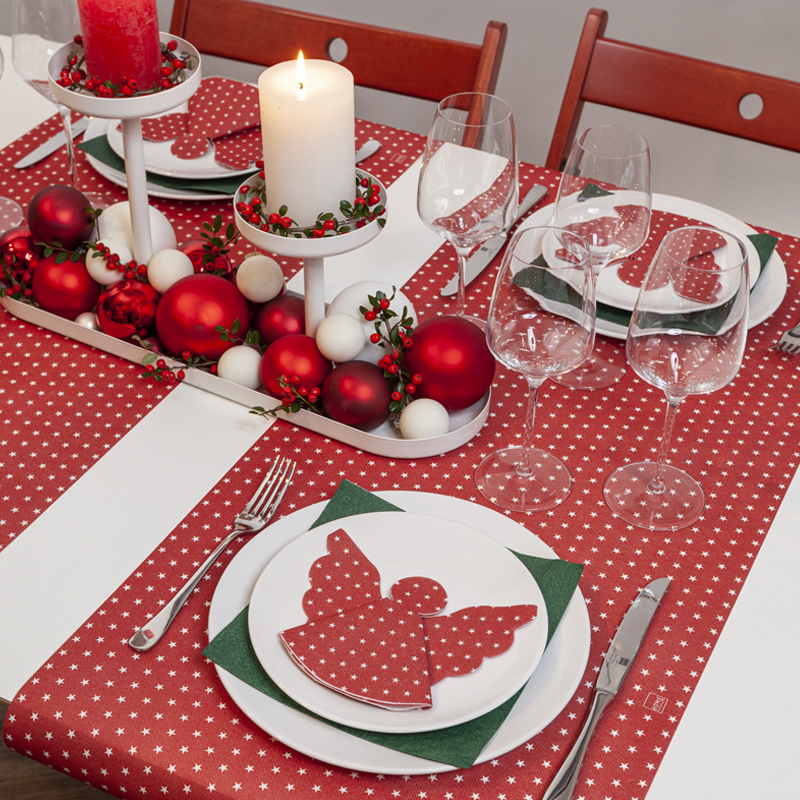 Entdecken Sie die SV Angel Mini Stars red Servietten, die mit ihrem Engelsdesign und roten Mini-Sternen jedem Tisch glamourösen Charme verleihen.