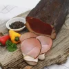 100 g wurden hergestellt aus 145 g Schweinefleisch, Speisesalz, Gewürze, Glukosesirup, Dextrose, Antioxidationsmittel: Natriumascorbat, Konservierungsstoff: Natriumnitrit, Unter Schutzatmosphäre verpackt
