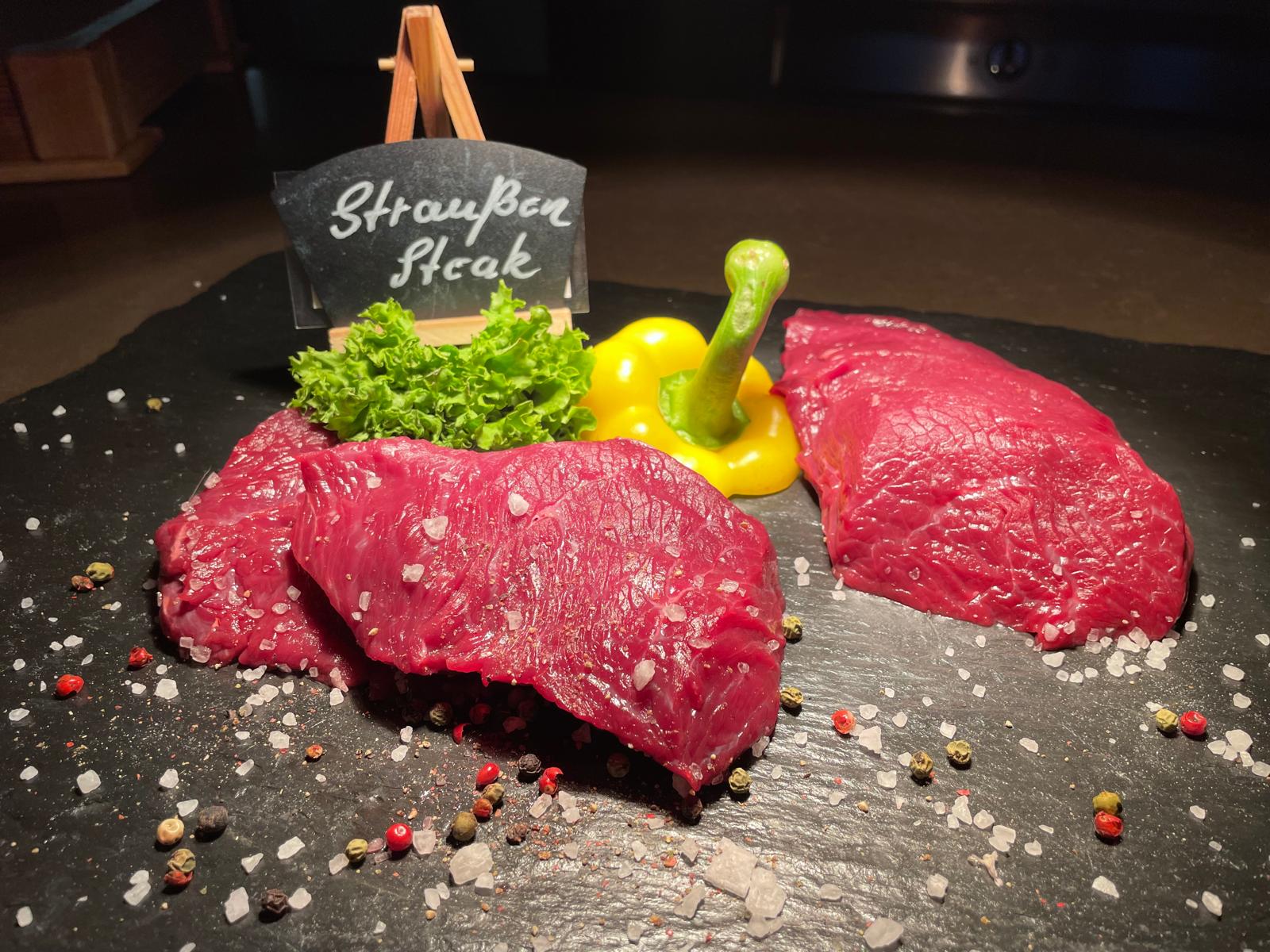 Nehmen Sie das Straußensteak min. 60 Min. vor dem Zubereiten aus dem Kühlschrank. Das Steak von allen Seiten gut salzen, da so der Geschmack des Salzes in das Fleisch eindringen kann. Außerdem entsteht auf diese Art eine schöne Kruste. Anschließend das Straußensteak ringsum in einer heißen Pfanne oder Grill scharf anbraten und mithilfe eines Thermometers auf eine Gartemperatur von 52 bis 55°C für auf die Garstufe „medium“ bringen. Nun entscheiden Sie über die Geschwindigkeit. Je höher die Temperatur beim Garen im Ofen, Grill oder Pfanne sind, umso schneller ist das Steak fertig. Es wird aber auch trockener und fester. Bei einer geringeren Temperatur dauert es zwar länger, aber das Fleisch wird wesentlich zarter und es bleibt saftiger, dies ist Geschmackssache.