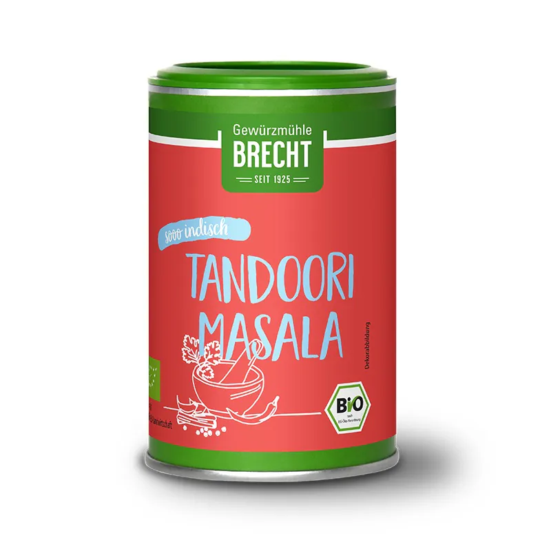 Vermische Brecht Tandoori Masala mit Joghurt und Zitronensaft für eine authentische Tandoori-Marinade. Oder mariniere Dein Fleisch oder Deinen Fisch mindestens 30 Minuten, um den vollen Geschmack zu entfalten.