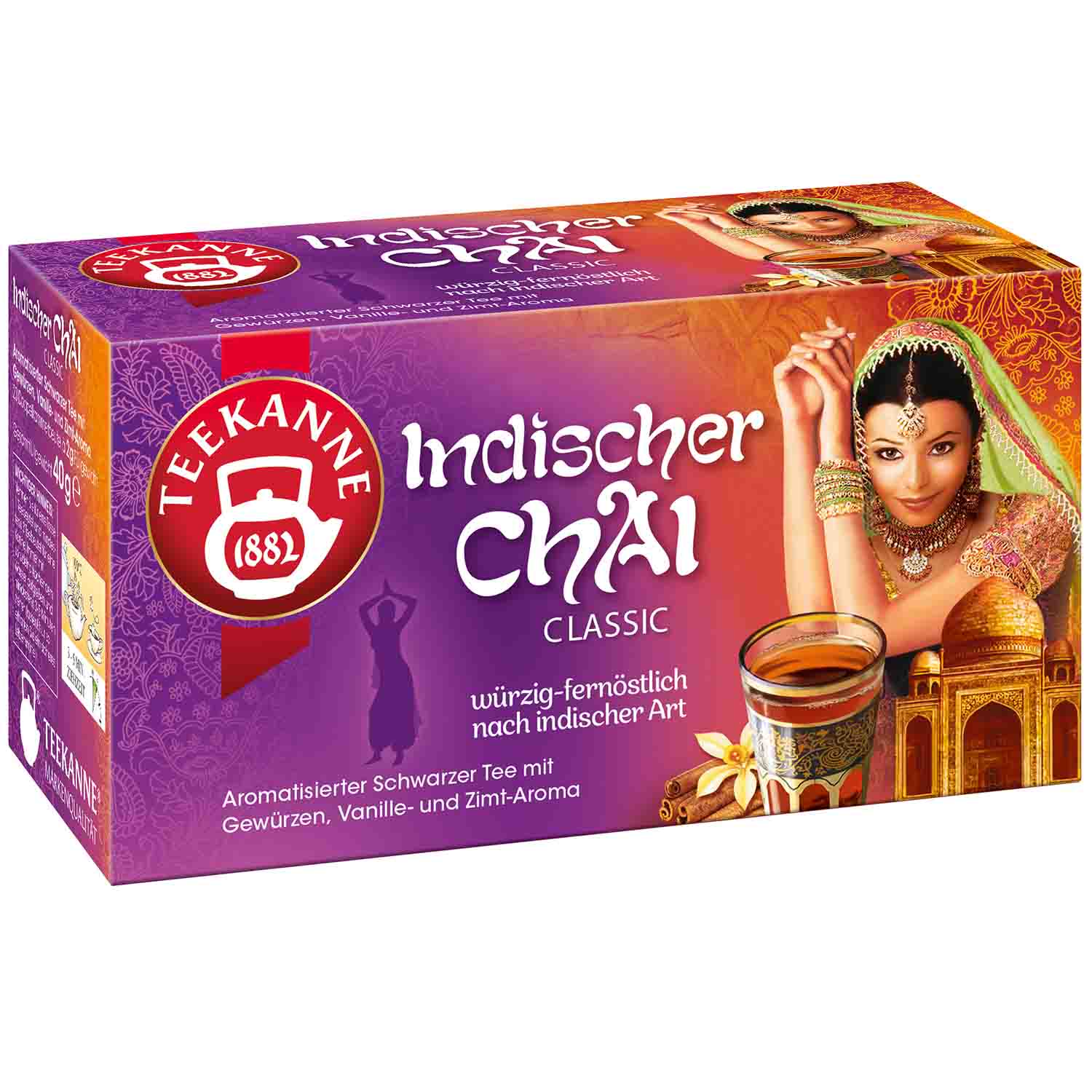 Tauche mit TEEKANNE Indischer Chai Classic in die farbenprächtige und pulsierende Welt Indiens ein und genieße den würzig-fernöstlichen Geschmack!