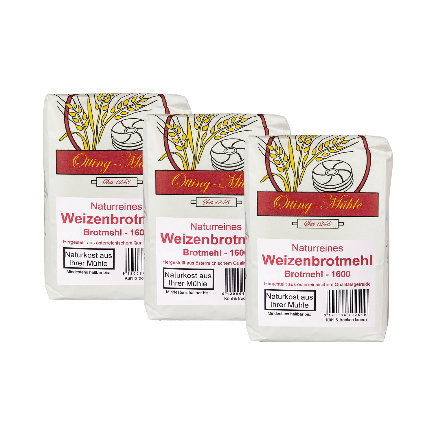 - Mehlpaket mit 3 x 1 kg Weizenbrotmehl 1600