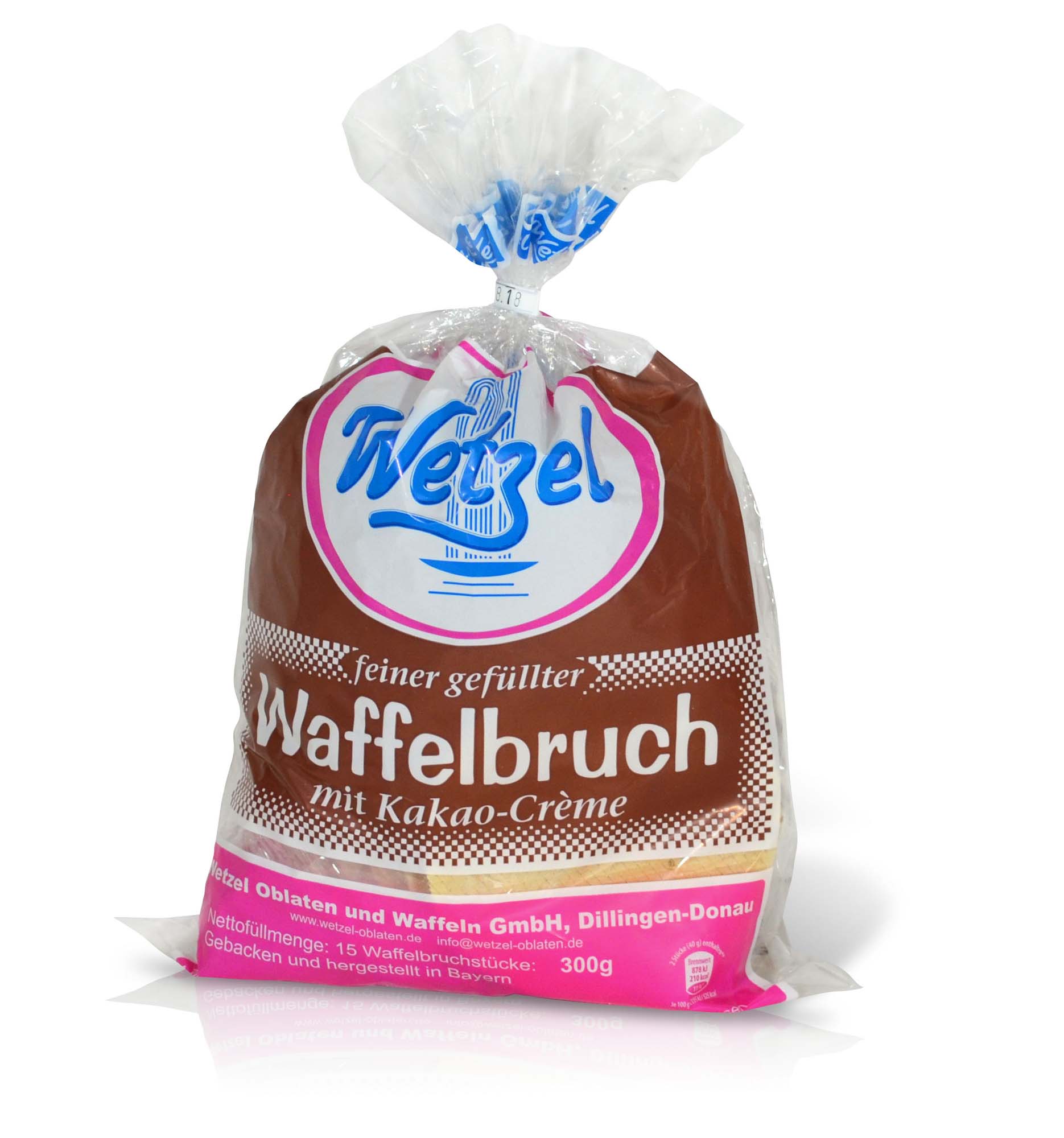 Die Legende WETZEL Waffel-Bruch im Beutel. Knusprig-leichte Waffelstücke in verschiedenen Größen. gefüllt mit einer zart-schmelzenden Kakaocreme.
