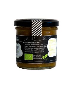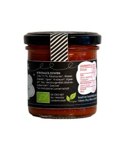 Zutaten: Chilis* 56%, Zwiebeln*, Weinessig*, Olivenöl*, Salz, Rübenzucker*, Knoblauch*.