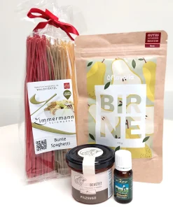 - Das Set bietet höchste Qualität und beinhaltet unter anderem Schilcher, Schilchersekt, Kürbiskernöl, Kürbisnudeln, Schilcher-Balsamico, Grappa-Rosinen und eine Salami verfeinert mit der regionstypischen Traubensorte Blauer Wildbacher