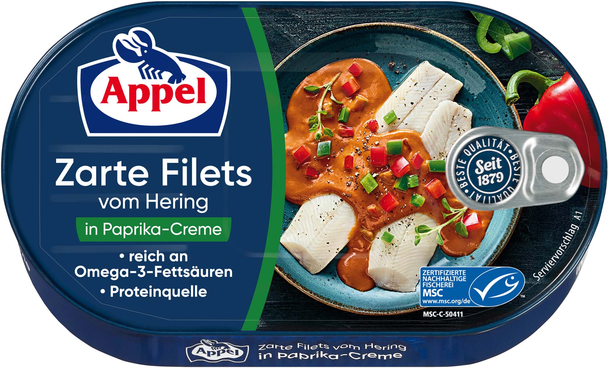 Zarte MSC Heringsfilets in einer Creme mit herzhaftem Paprika.