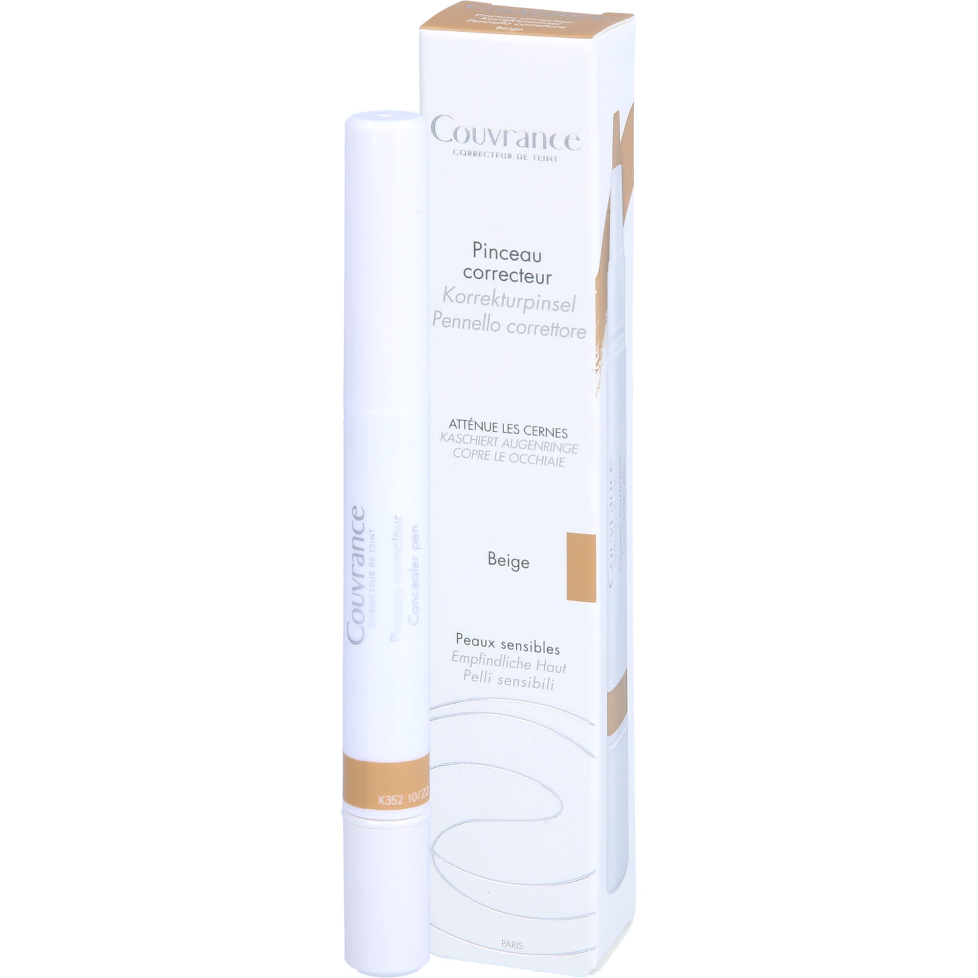 Make-up, reduziert Unreinheiten und verfeinertDer Couvrance Korrekturpinsel Beige kaschiert effektiv lokale Hautunregelmäßigkeiten und dunklere Gesichtspartien auf. Mit seiner feinen Textur und leichten bis mittleren Deckkraft deckt er kleine Hautunregelmäßigkeiten und Rötungen ab. Er kann einfach nach dem Make-up aufgetragen werden und respektiert dabei auch die empfindlichste Haut. Neben dem exzellenten Halt und der hochverträglichen Formel ohne Duftstoffe enthält der Concealer einen UV-Schutz SPF 15, um die ohnehin schon empfindliche Haut vor Sonneneinstrahlung zu schützen. Er ist wasserfest, transfer- und schweißbeständig.