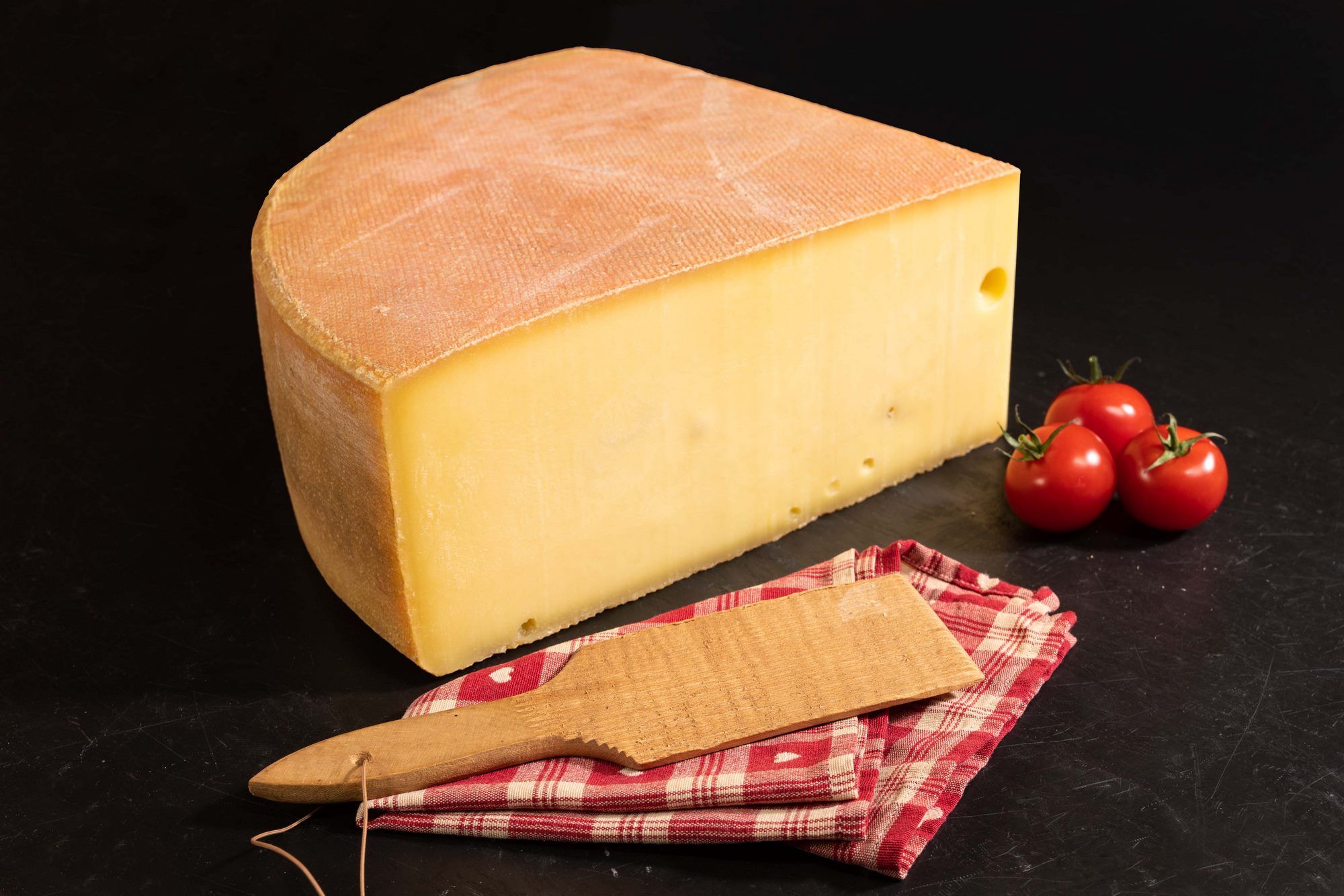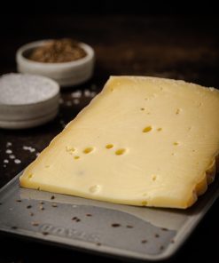 Der Bergkäse aus 100 % Milch aus dem Allgäu ist ein Hartkäse mit einer bis zu maiskorngroßen Lochung.
