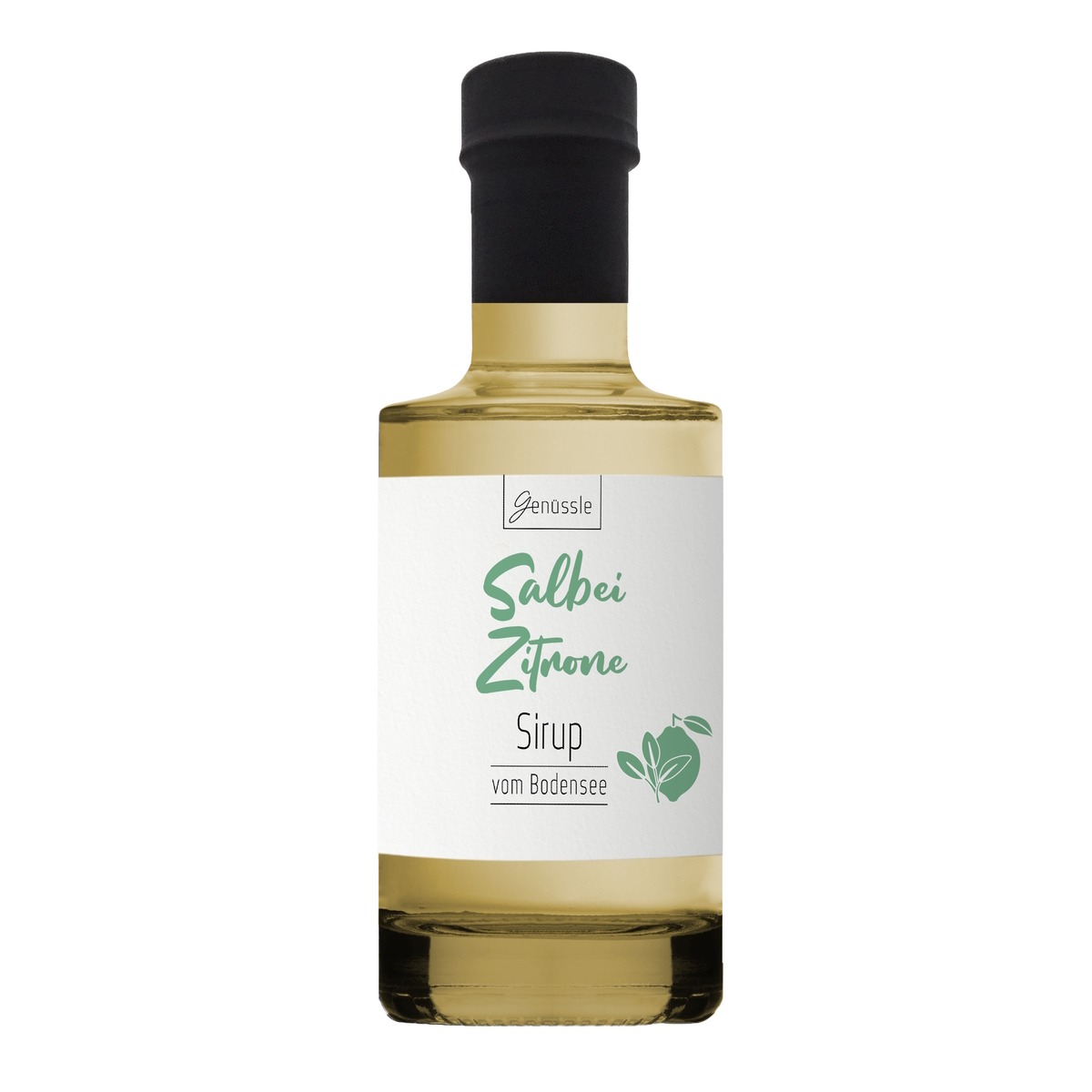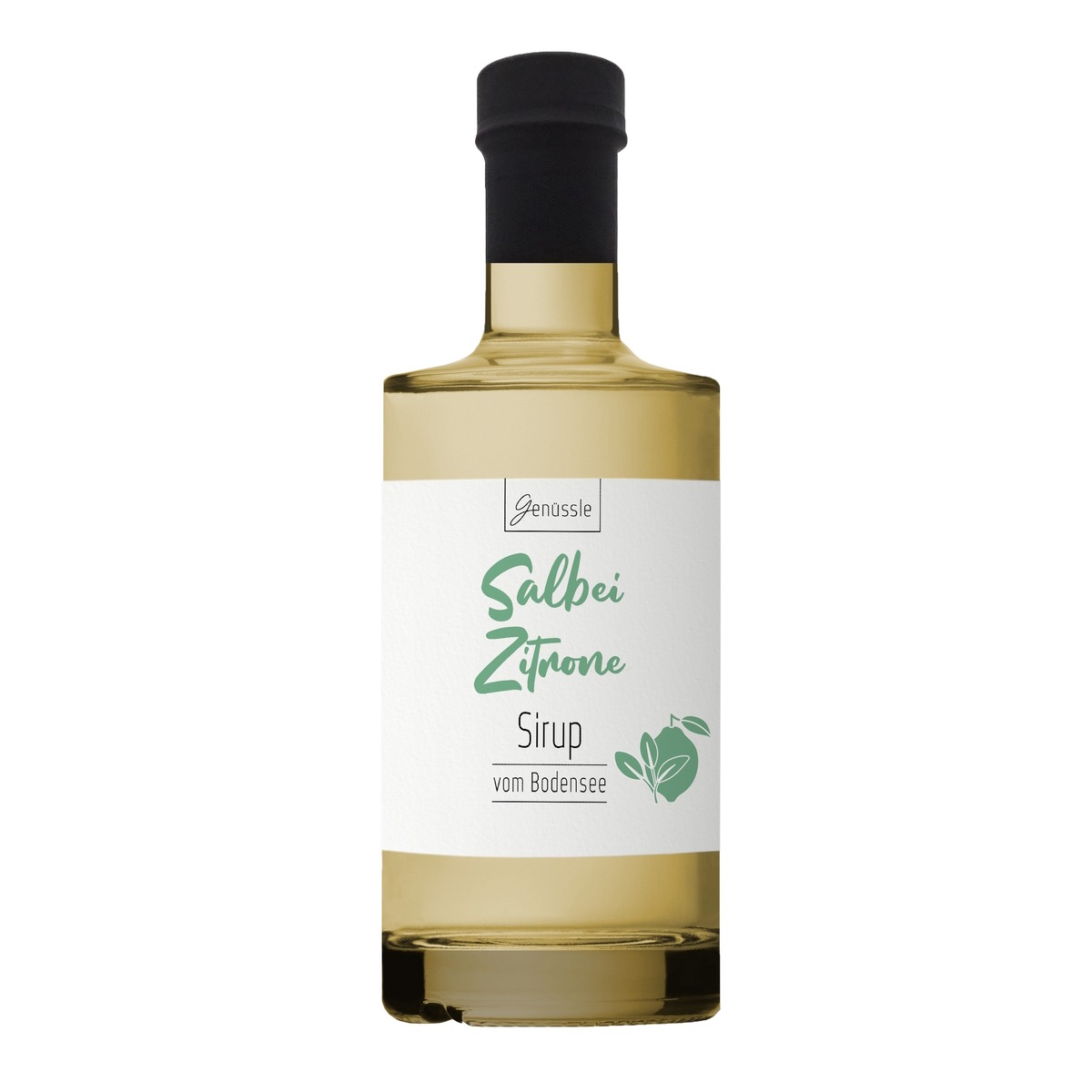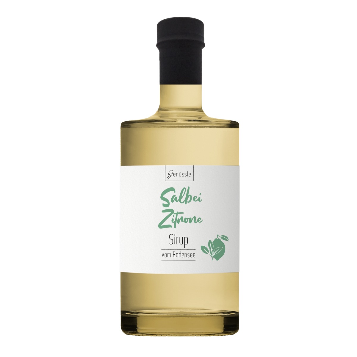Salbei-Zitronen-Sirup aus 100% naturreinen Zutaten. Frei von Konservierungsstoffen, Farbstoffen und künstlichen Aromen. Außergewöhnlicher Salbei Zitrone Sirup in edler Glasflasche mit schöner Farbe und edlem Salbei Geschmack.