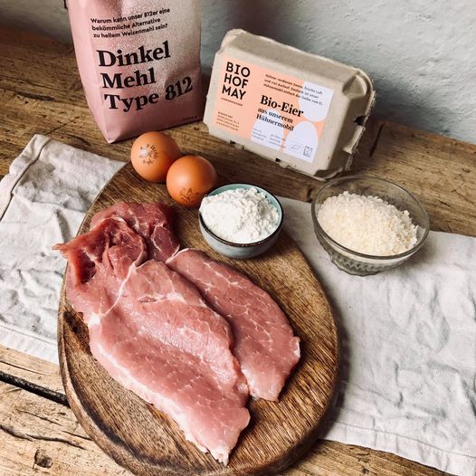 Die beliebten Schnitzel vom MAY- Schwein sind zart und saftig und eignen sich somit auch sehr gut für Geschnetzeltes.