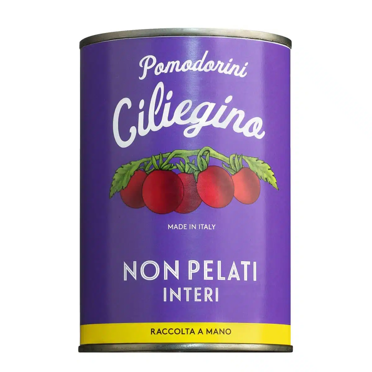 - Kirschtomaten aus Kampanien, ungeschält und eingelegt in Tomatensaft.