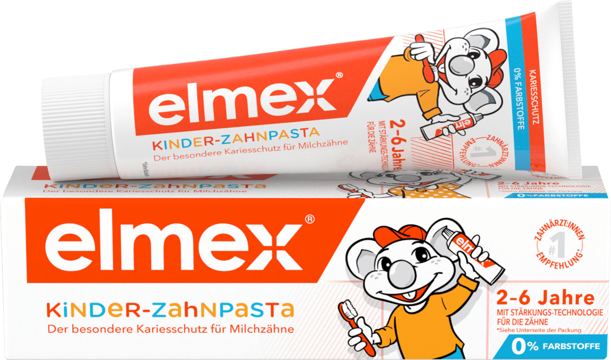 Milchzähne verdienen den besten Schutz und die beste Pflege: Sie haben eine Platzhalterfunktion und sind Voraussetzung für gesunde bleibende Zähne. elmex® KINDER-ZAHNPASTA ist sanft zum Zahnfleisch und enthält Neo-Aminex™, unsere neueste Generation der Amin + Fluorid-Technologie für einen effektiven Kariesschutz. *Entsprechend der neuesten Expertenempfehlung. Die Fluoridkonzentration von 1000ppm entspricht der aktuellsten Expertenempfehlung der Deutschen Gesellschaft für Kinderzahnheilkunde und der Deutschen Gesellschaft für Präventive Zahnmedizin.