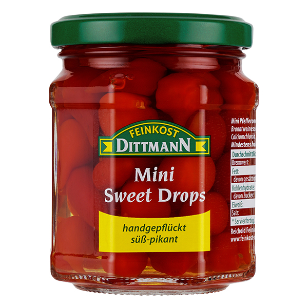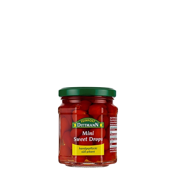 Süß-pikante Mini-Sweet-Drops: Die unter dem Namen Sweet Drops bekannten Mini-Pfefferonen sind im peruanischen Amazonasgebiet beheimatet. Sie schmecken trotz ihrer milden Schärfe leicht süß und entfalten sofort ihr ganzes Aroma. Die Mini-Sweet-Drops eignen sich hervorragend als Dekoration bei Salaten und Antipasti-Buffets. Sie sind aber auch eine würzige Zutat zu Gulasch und deftigen Fleischgerichten.