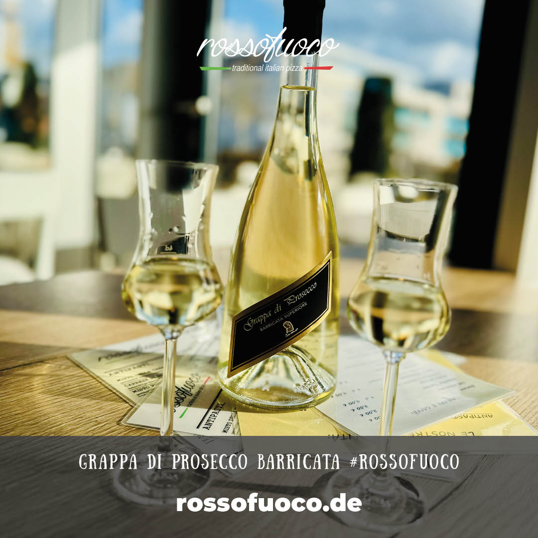Als Digestif bieten wir unseren Gästen gerne unseren Grappa di Prosecco Barricata (4cl, 40% vol.) an. Er wird aus Prosecco hergestellt und hat eine leicht gelbliche Färbung.
