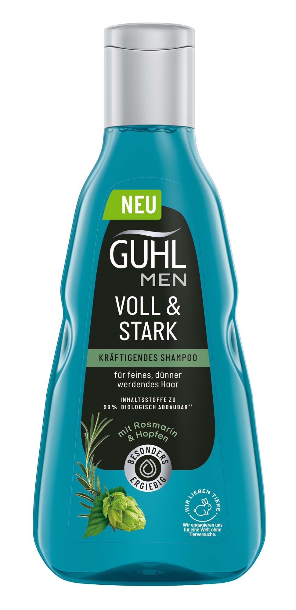 Das Guhl MEN Kräftigendes Shampoo reinigt gründlich, stärkt das Haar und verleiht ihm mehr Widerstandskraft und Vitalität.