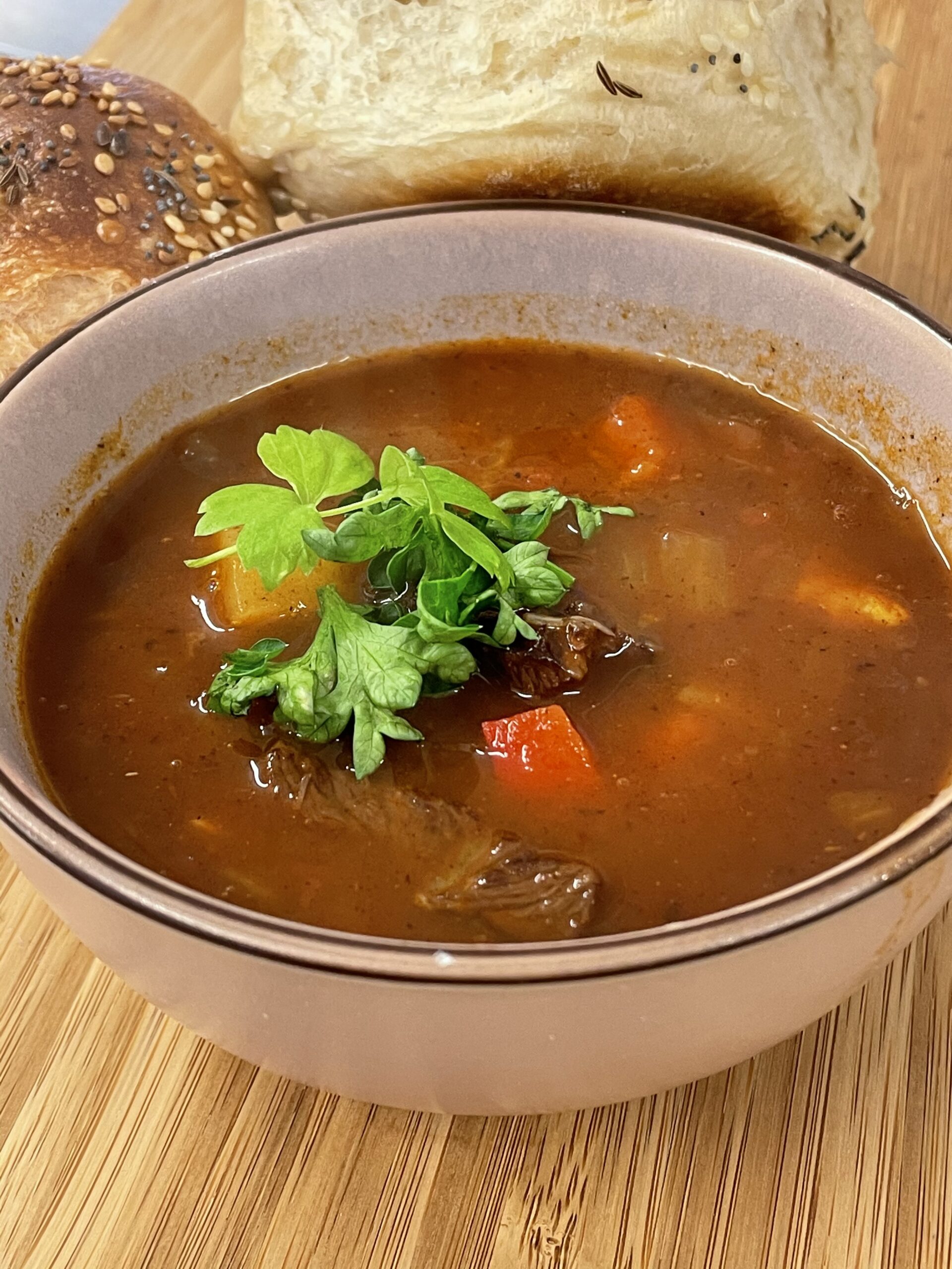 Hausgemachte Gulaschsuppe mit 100% Rindfleisch.