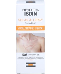 Beginne mit der Behandlung 15 – 30 Tage vor der Sonnenexposition. Während der gesamten Dauer des Aufenthalts in der Sonne anwenden. Zweimal täglich großzügig auf die betroffenen Hautbereiche auftragen. Bei direkter Sonnenexposition alle 2 Stunden wiederholen. Nur auf sauberer und intakter Haut auftragen. Bei Patienten, die sich einer Behandlung mit photosensibilisierenden Medikamenten unterziehen wird empfohlen, FotoUltra Isdin Solar Allergy während der gesamten Behandlung anzuwenden. Mindestens 20 Minuten vor der Anwendung eines anderen dermatologischen Produkts auftragen. Es liegen keine Daten zur Anwendung von FotoUltra Solar Allergy bei schwangeren Frauen, während der Stillzeit und bei Kindern vor. Vorsichtshalber sollte FotoUltra Solar Allergy bei schwangeren Frauen, während der Stillzeit und bei Kindern nicht angewendet werden. Packungsbeilage vor dem Gebrauch sorgfältig durchlesen. Kontakt mit den Augen und Schleimhäuten vermeiden. Im Falle von unerwünschten Reaktionen auf einen der Bestandteile von FotoUltra Solar Allergy Behandlung abbrechen und Arzt hinzuziehen. Außerhalb der Reichweite von Kindern aufbewahren. Vor dem Gebrauch schütteln. Keine besonderen Lagerbedingungen erforderlich. Nur zur äußeren Anwendung.Ingredients: