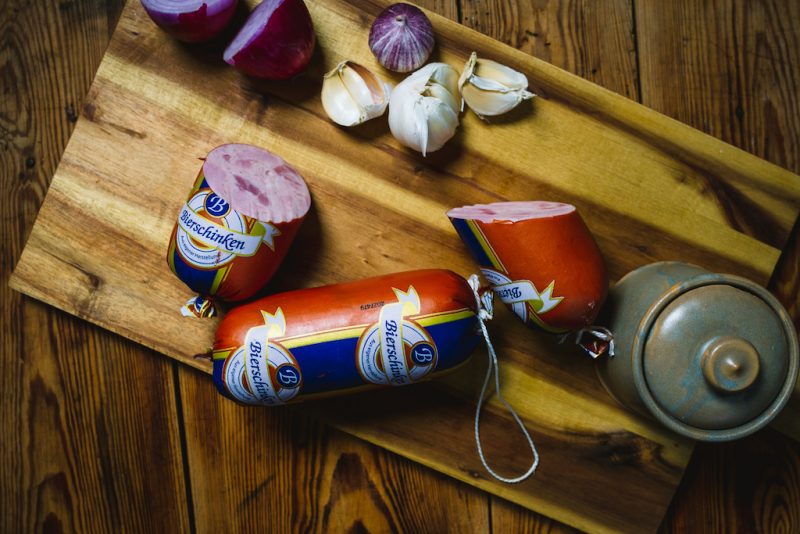 Schweinefleisch, Rindfleisch, Nitritpökelsalz, Gewürze