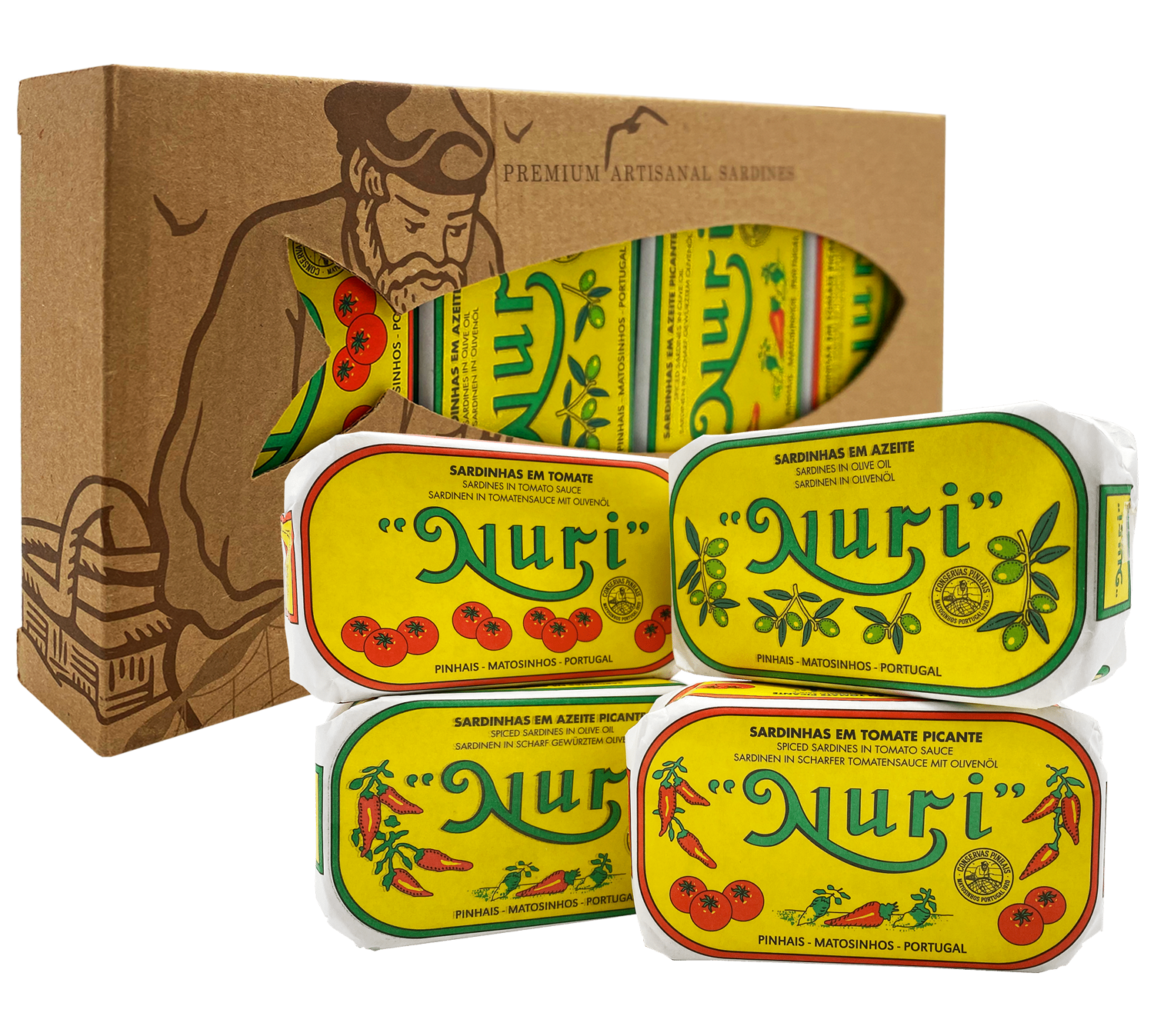 Probierpaket aus vier verschiedenen Sorten der beliebten NURI Sardinen: