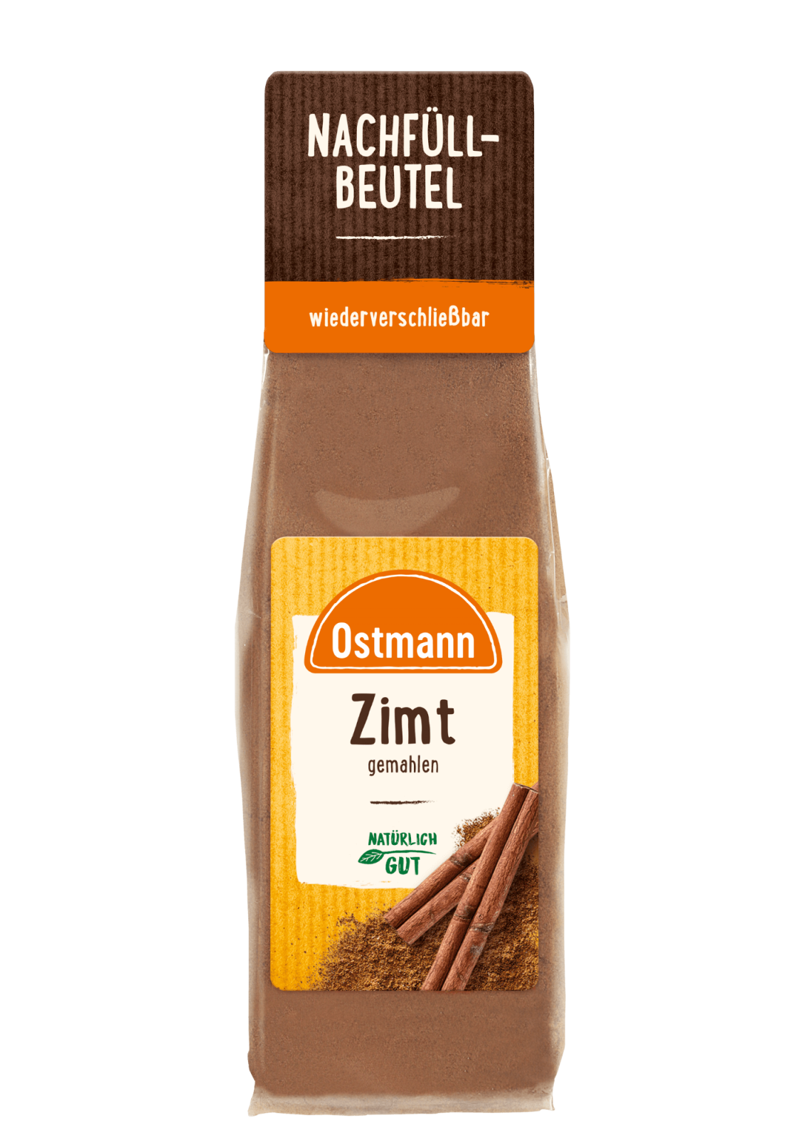 Ostmann Zimt gemahlen macht Süßspeisen wie Milchreis, Obstsalat, Fruchtkompott,Apfelmus, Waffeln und Puddings einfach unwiderstehlich. Zimt ist auch ein beliebtes Gewürz für Backwaren wie Kuchen, Plätzchen, Torten und Zimtsterne. Zimt verleiht ebenfalls Lammragout, Schmorbraten und eingelegtem Gemüse ein pikantes Aroma.