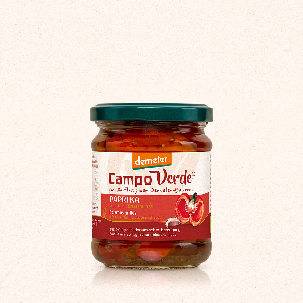Paprika** (56 %), Sonnenblumenöl* (33 %), natives Olivenöl extra** (9 %), Steinsalz, Weißweinessig**, Zitronensaft**, Knoblauch**, Petersilie**, Basilikum**, Peperoncini**
