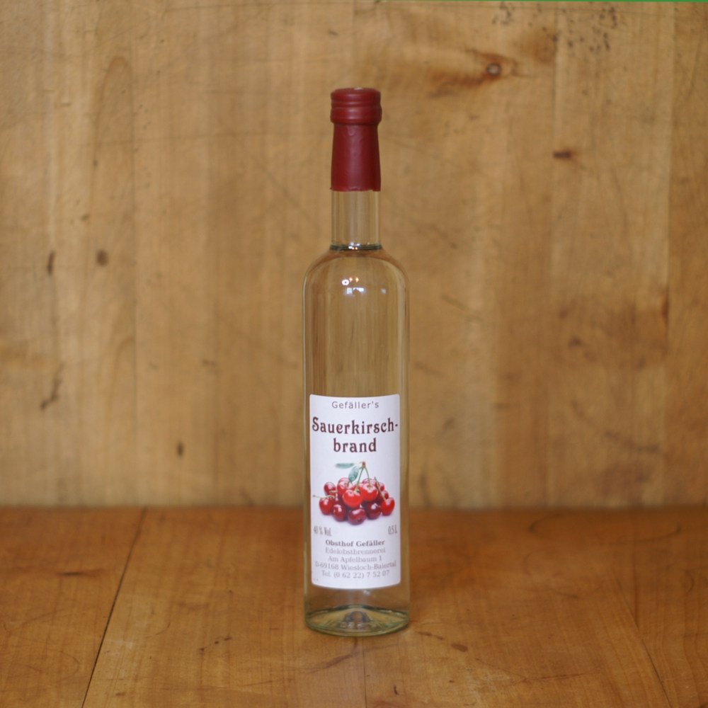 Genießen Sie den leckeren Geschmack des Sauerkirschbrands vom Obsthof Gefäller und entdecken Sie auch die weiteren Obstbrandsorten in unserem Shop.