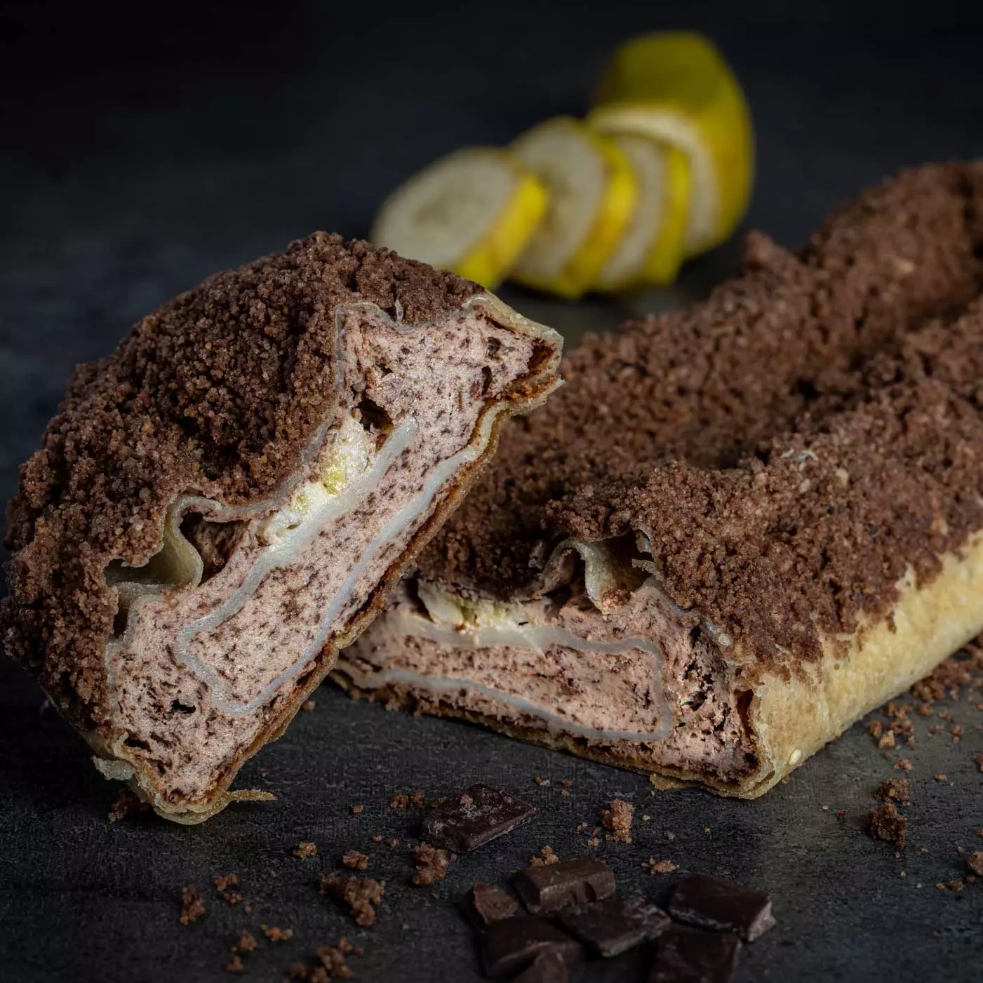 Choco Loco ist eine Eigenkreation und einer unserer persönlichen Favoriten. Die Strudelfüllung ist eine saftige Schokoladen-Topfen Creme, kombiniert wird diese mit weichen Bananenstückchen.