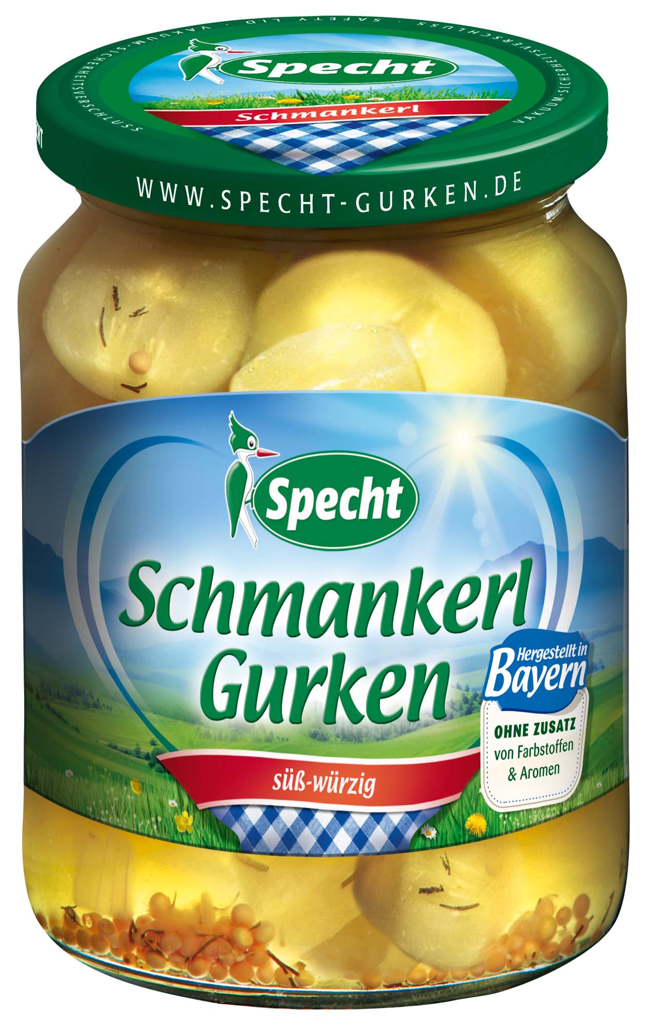 Süß-würzig im Geschmack, sind Schmankerlgurken eine besondere Delikatesse. Erntefrische Gurken werden geschält, geschnitten und in einem süßen Sud mit feinsten Gewürzen abgeschmeckt. Sie eignen sich gut als Beilage zur bayerischen Brotzeitplatte.