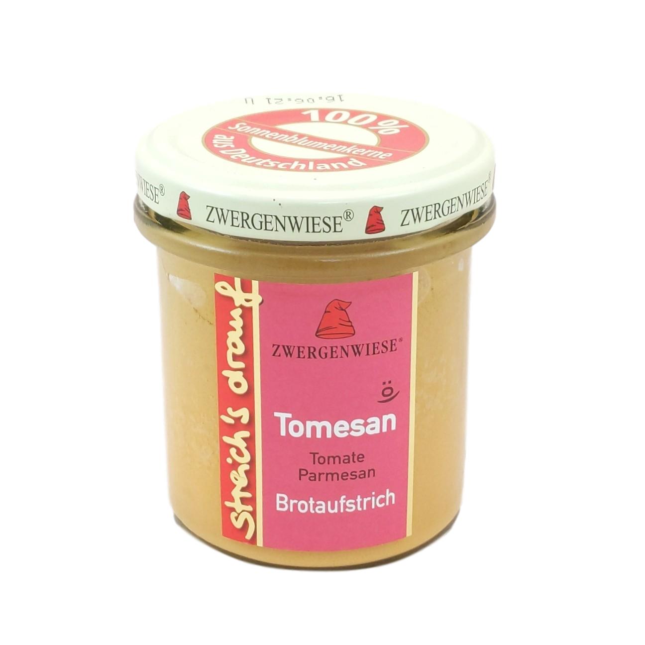 Wasser, Rapsöl*, Sonnenblumenkerne* 13%,Tomatenmark* 13% einfach konzentriert, Zwiebeln*, getrocknete Tomaten* 8%, Zitronensaft* aus Zitronensaftkonzentrat*, Apfeldicksaft*, Parmesan* 3%, Kartoffelstärke*, Steinsalz.