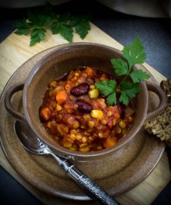 Zutaten: Trinkwasser, Rindfleisch (30%), Zwiebeln, Paprika, Weizenmehl, Gewürze, Palmöl, Farbstoff Ammoniak-Zuckercoleur.