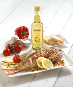 In hellen Sahnesaucen harmoniert Zitrone & Essig wunderbar mit Fisch. In Kombination mit Thymian erhältst du feine Marinaden, die in der Grillsaison Garnelen, geräuchertem Lachs oder gebratene Zucchinis auf Feinste veredeln. Und selbstgemachte Zitronenlimo oder sommerliche Cocktails werden durch einen Spritzer Zitrone & Essig zu einem echten Durstlöscher.