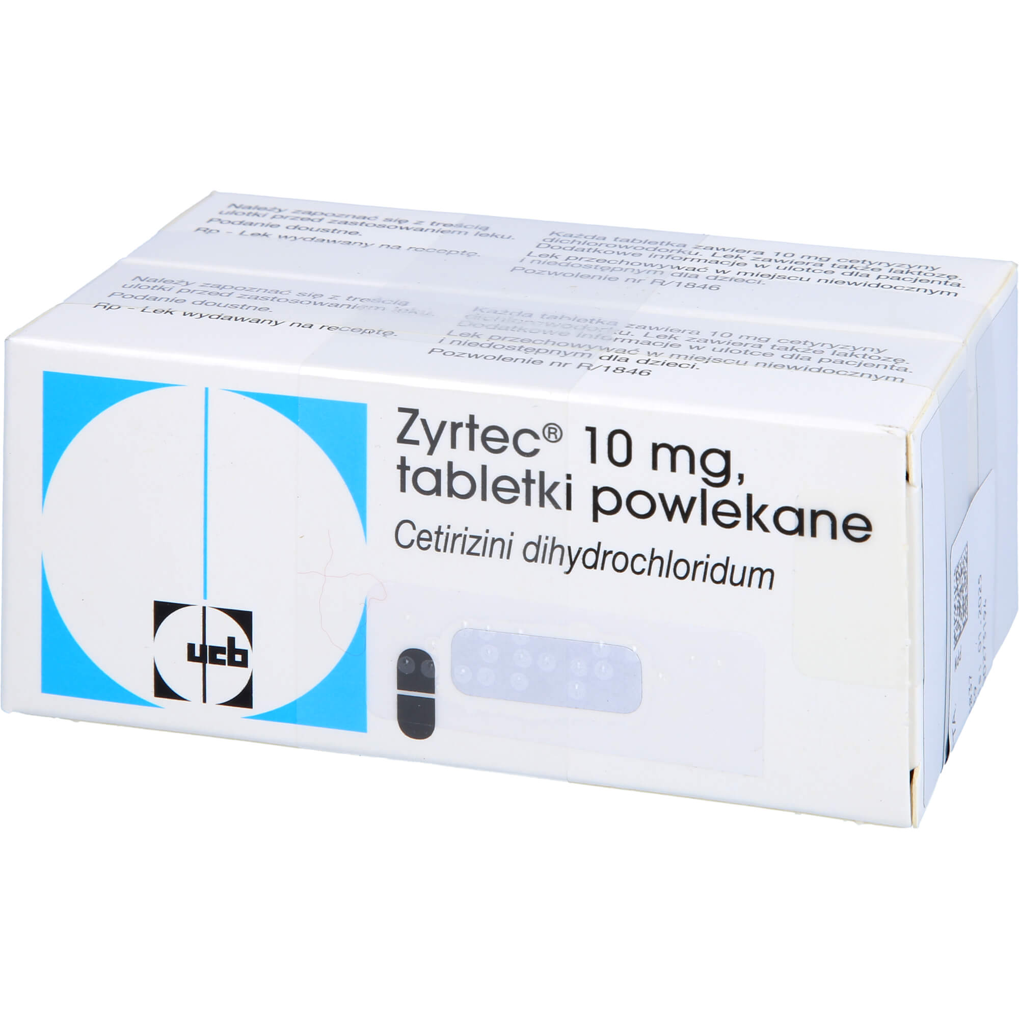 Zyrtec 10 mg Filmtabletten. Wirkstoff: Cetirizindihydrochlorid. Anwendungsgebiete: zur Linderung von Nasen- und Augensymptomen bei saisonaler und ganzjähriger allergischer Rhinitis und zur Linderung von Nesselsucht (Urtikaria).